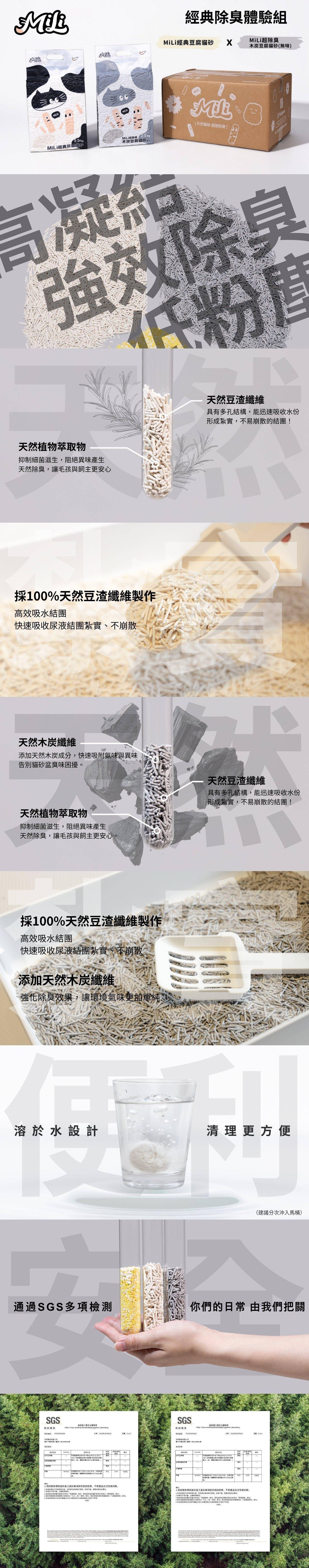 MiLi 經典豆腐貓砂+MiLi超除臭木炭豆腐貓砂 (組合)(2.5kg/包),MiLi 天然貓砂